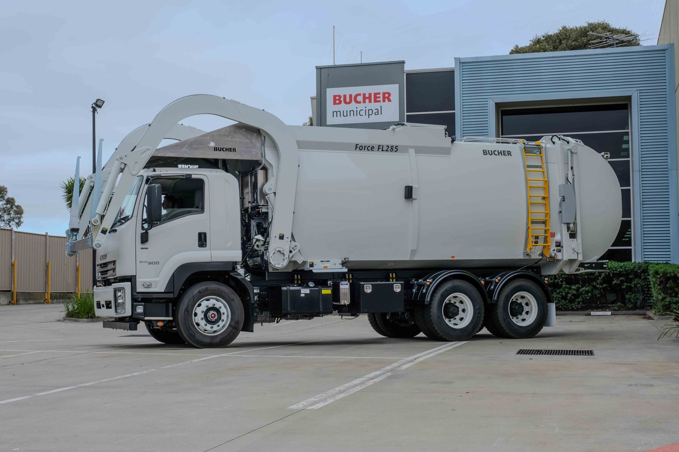 Bucher Municipal FORCE front end loaders are designed and built for Australia's demanding commercial refuse collection industry. The FORCE range includes two models, the 285 is ideal for 6x4 trucks while the extra capacity of the 335 sits well on the 8 x4 configuration. Like all Bucher Municipal refuse products, FORCE front loaders are designed and engineered to meet the exacting requirements of the waste collection industry. FORCE incorporates CANbus digital control systems for precise operation while the Hardox bin construction ensures long-life. Boasting powerful hydraulics, FORCE can lift and pack simultaneously, and includes pack-on-the run. H & S are primary considerations in the design of FORCE which leads the class for safety features. With a host of useful, time saving options FORCE can custom built to suit most applications.